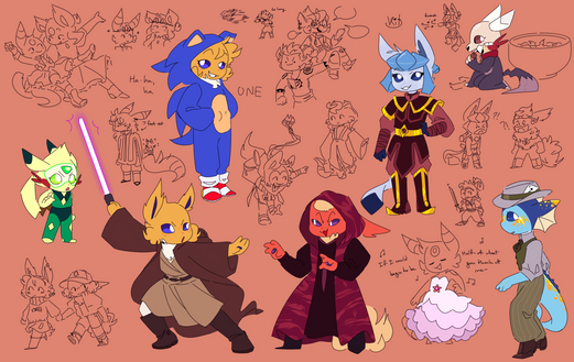 i threw in some eekas (eevee pikas) for fun too, aren't you happy i saved him from the cursed doodle page? what a guy. most normal eevee to exist