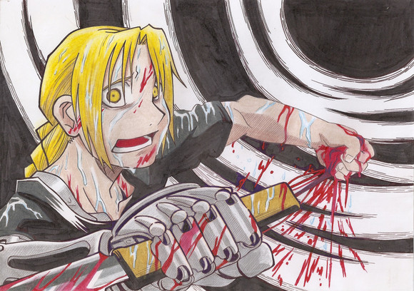 Happy Thanksgiving! Anywho, real quick I found this pic that I realized I hadn't submitted yet. This was something I put together quickly before the manga had ended (I know old) I colored it a little sloppily a few months ago and had my fun. November is my FMA month because it's this month that I got into it. It was Thanksgiving that I finished watching the FMA movie with my sister last year. I love this series deeply and owe it as many pics as I can, though I'll admit that I probably wont be drawing for it but on a whim in the future. I work in phases and Fullmetal is unfortunately over.So... like my lovely censorship?