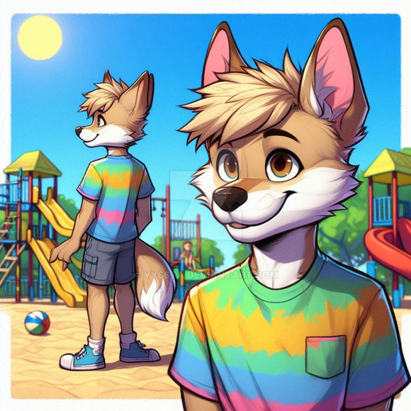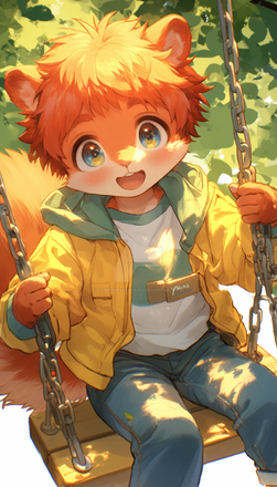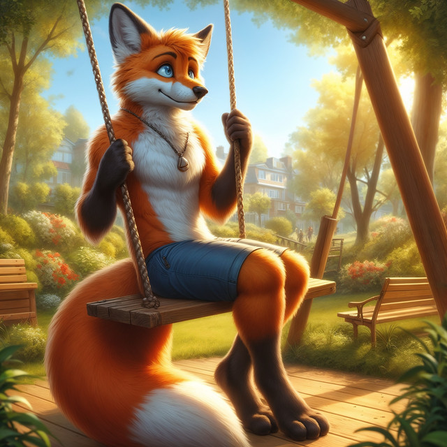#fox #anthro #ai #cub #paws #shorts #swing