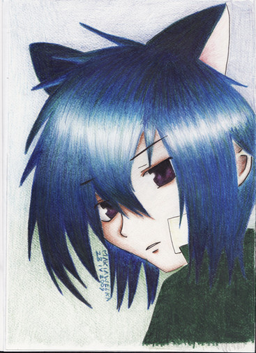 and i actually draw on a blue paper, um that's why he's blue? o.o;;