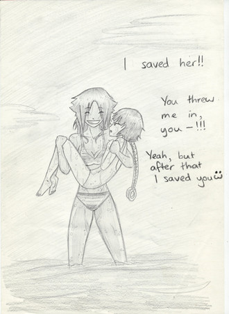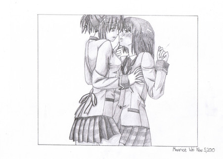 WHY IS IT THAT ALL MY PERVY DRAWINGS HAVE THE BEST ANATOMY?!?!?It's not fair *pout* Oh, you can see the lines, even though I drew it on the OTHER side, because either the paper is too flimsy, or our scanner is too strong (*gasp* like an xray machine!). Hmm...I don't like Soi's hand, I redrew it over and over again, and it still looks unnatural *pout summore*