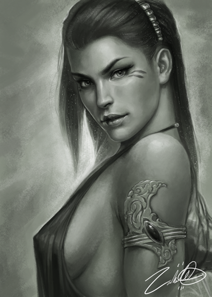 Tech stuff: Photoshop CS + Wacom Bamboo + a reference of Natalie Portman for the face and the pose.