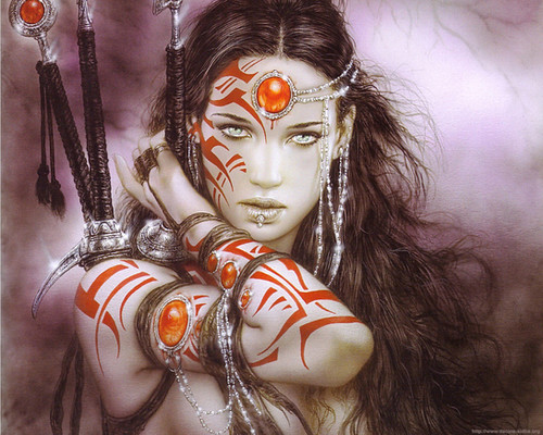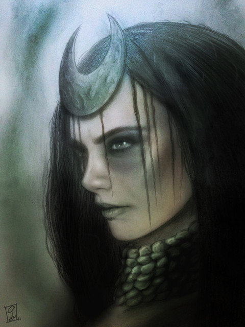 Honestly this makes me think of Wonder Woman but with fangs and more badass. Awesome artwork