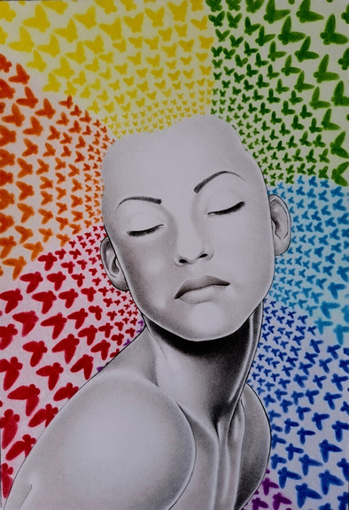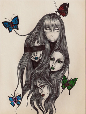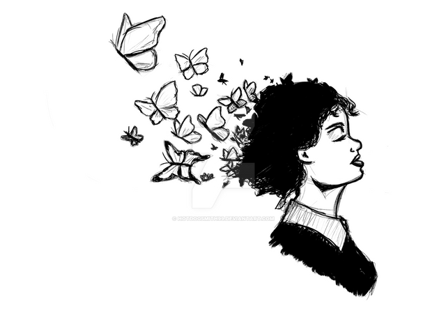 When I was in England, I kept on seeing this image of a woman with butterflies in her hair and it gave me the idea of a woman with butterflies for hair.Butterflies are symbols of not only inspiration, but evolution because of how they change from caterpillars to butterflies. I think of this image as a representation of how the little things that inspire us can also change us.