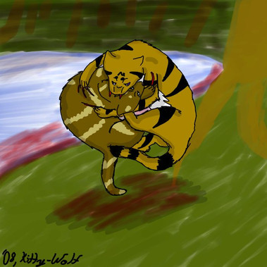 I read that manga and I'll feel sorry for the cute little guy. He was just misunderstood like my cat. She can't meow like an ordinary cat, it's this raspy sound. And she's small for her age. Her name is Nightmare because she is an awesome hunter and chases the other cats so she won't get picked on. Cat's really do think like the in Warriors because my cat had slapped my mom's cat when all my mom' cat wanted to do was say hi and have a hello hug. Her name is baby because she sounds like a baby when she meows and my cat is always mean to her. Now you have this sort of Warriors story. My cat is no kitty pet though. She doesn't where a collar and spends her time outside even though she was born a kitty pet. My mom's cat's were originally born in the wild. Fluffy never comes in though. He's the oldest cat we have.