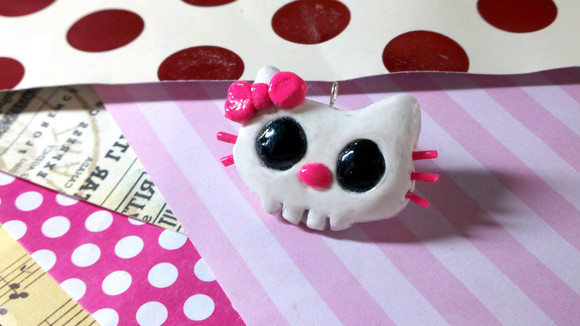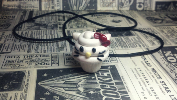 Hello kitty panda necklace charm, made out of polymer clay--------