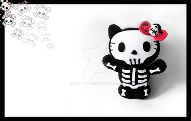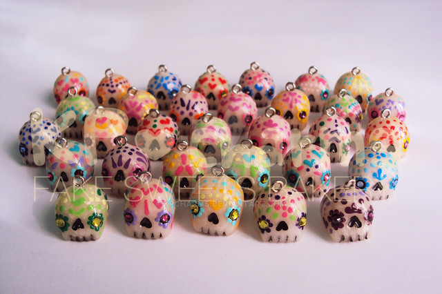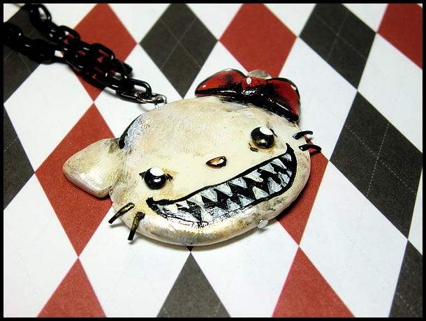 Hello kitty skull necklace charm, made out of polymer clay.------