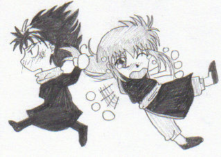Inuyasha, kagome and kikyo: the most irritating love triangle ever. why on earth would someone chase after a homicidal dead girl when hes got a perfectly good girl by his side already, complete with detectable pulse?a quick sketch of 15mins or so, for the 100 pic challenge.