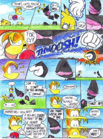 I love that drawing of Rayman after he hits Professor Barranco, hehe. So purty :3