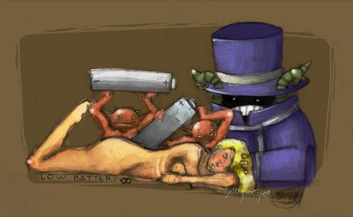 I love tho concept here, the body looks a bit big in the middle, the arm is a bit short too.... aside from that the background could use a little work, but as stated its a great concept