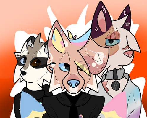 me and my friend and his girlfriend made an collab with our ocsme in the middle, he on the left and she on the right