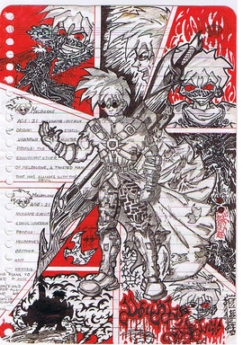 Photo taken and manipulated in photoshop cs. 15 or so layers too. ^^ There were a few verions of this, a bright orange/black one, but this one was the best of them all. Some appretiated critisism was given too to help with the final peiceAnd if you can't tell (cause the last versions were hard to tell) it's a knight with his sword ^^ lol.
