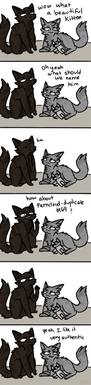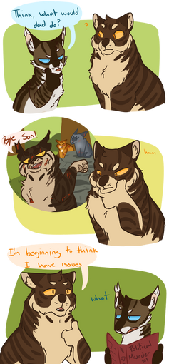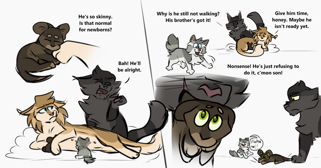 AU Idea: Brambleclaw is the unofficial adoptive son of the Fire family who doesn't really clue in until his "little sisters" are born lolAlso I really wish I had the ability to really make comics instead of single pictures but it seems my fate is to cut and paste forevermore haha.