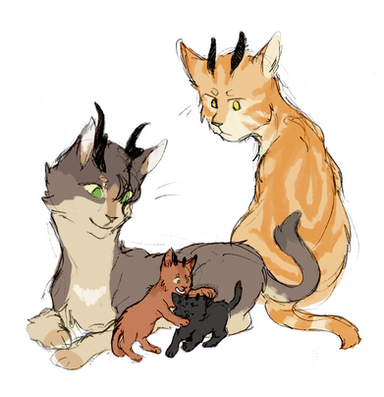 Aww, this is so adorable! Considering that Firestar had already became something like a father figure to Brambleclaw, that with being his mentor and all, this AU is not so impossible. Plus, it's amusing to see how huge Brambleclaw is compared to Firestar and Sandstorm.