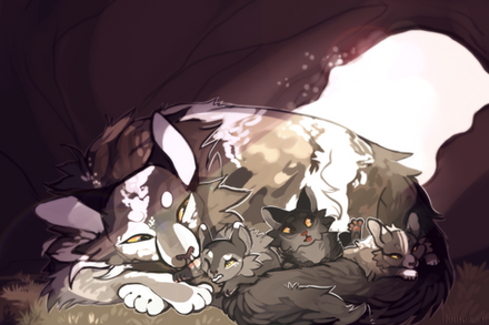Their children were another story. Lark's only ever described as a 'pale tabby' with no mention of proper colour, but was said to resemble her father alot; in other words, long fur and a greyish colour. Pine's simple enough, though deciding the shade of his brown pelt wasn't the easiest job in the world.