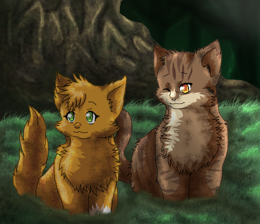"Brambleclaw, over here," she whispered, and her tail flicked urgently. Her voice bore traces of shock, and he began wondering what she'd spotted, as he padded towards her.