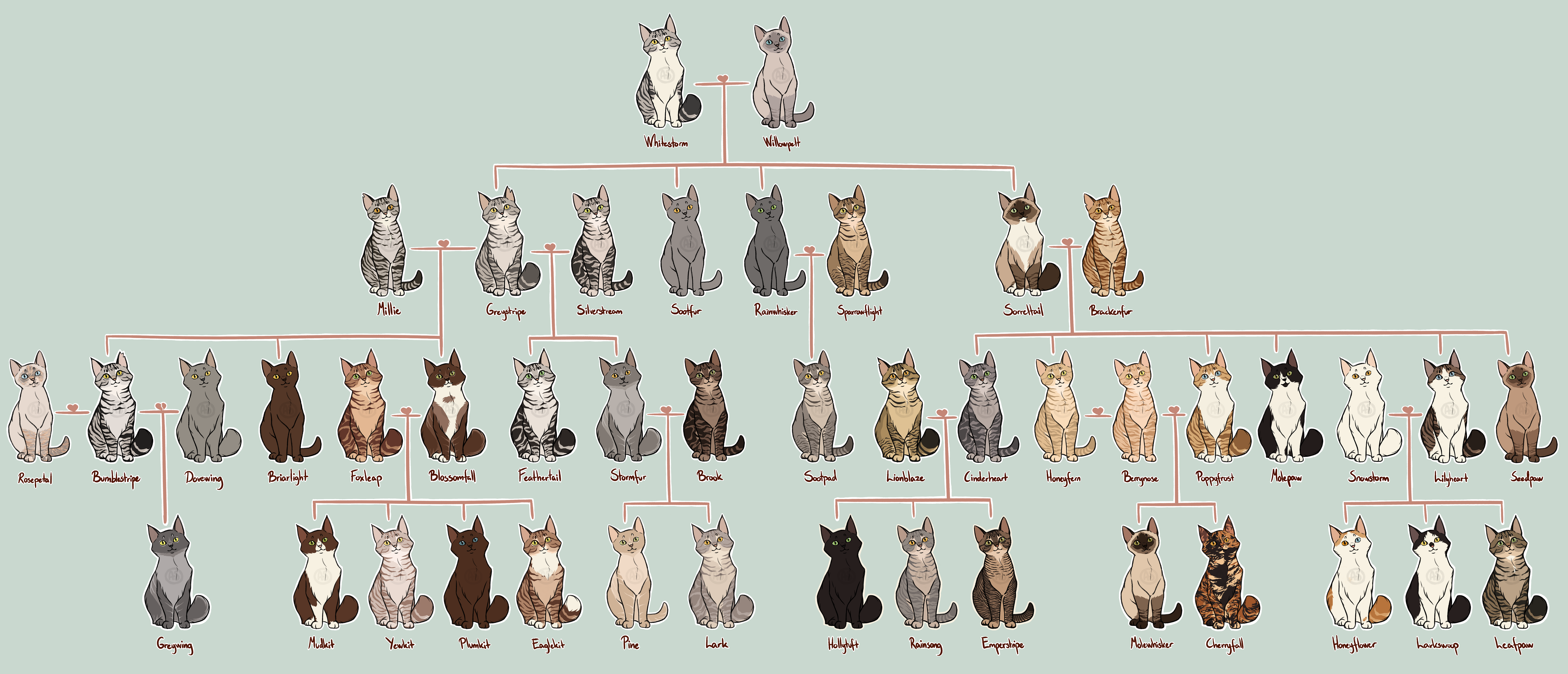 And yeah, the whole clan is literally related in one way or another. That's why I'm such a heavy arguer when it comes to Lionheart may be the father of Brackenfur and company...because if they are the children of Whitestorm, it would mean that BrackenfurxSorreltail is a sibling pairing...Erins, you don't want that ey?