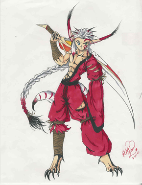damn! awsome job man! i really like his clothes and his weapon! nicely drawn as well!, keep up the awsome work okay? ^^