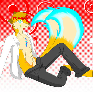 whoa... lol this looks so cute! -w- pluse his body is nicely drawn.. anyways yeh =3 nice tosee stuff drawn by ya again. but this is a very nice pose ya put him in, but did ya hafta be a perv? lol (joking even if the pants are unzipped)
