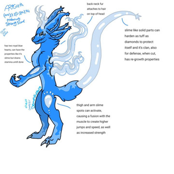 Waterbranchs are an aquatic based species and while most of their body is typically soft and slimey they can have traits such as scales, or fur and hair.