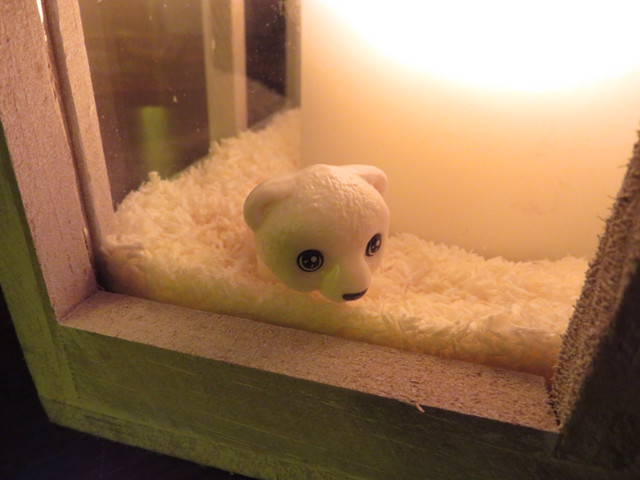 He is 9 inches tall and made from black fleece, faux white fur and felt
