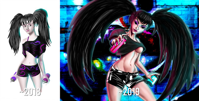#anime #catgirl #characterdesign #illustration #ninjagirl #oc #originalcharacter #painting #tiger #animemangagirl #characterevolution #art #kiwikitty88 #2014vs2018vs2020 #tigergirl