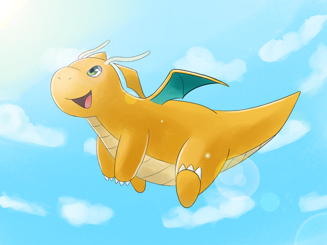 nice picture, dragonite almost looks like he is standing on the cloud. hah, the pic is so cool i stand on the clouds