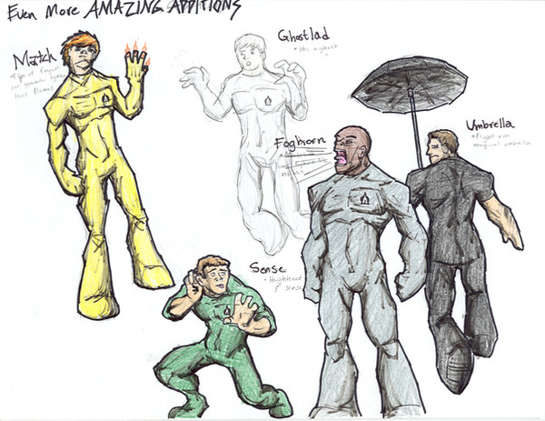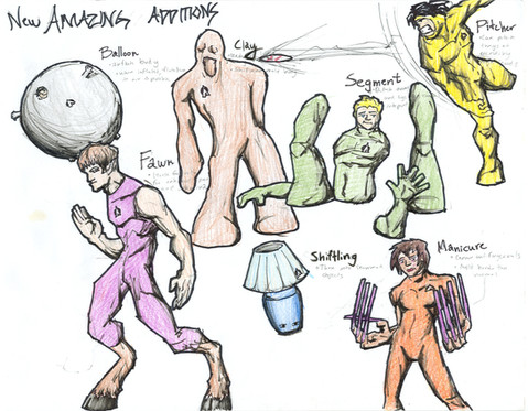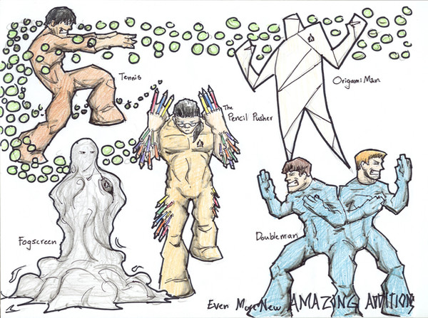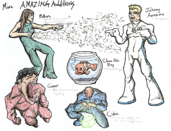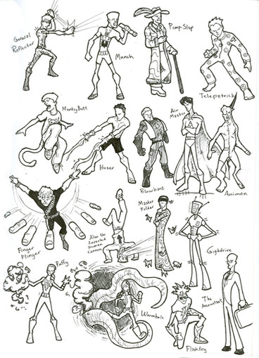 I must say I'm really impressed with these, all three pages had good, funny, and weird superheros, you have a nack for making them up!