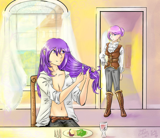 Just so you know, it's my forever headcanon that Harrison's doing this because of Betty. =w= He heard from a questionably reliable source that Betty liked french maid outfits, so he did it for her, but he's tsundere, so he never actually went and showed it to her. Alphonse will show her the pictures, though. And then the two of them will die laughing as Harrison goes and grows mushrooms in his emo corner... while still wearing the outfit. =w=d