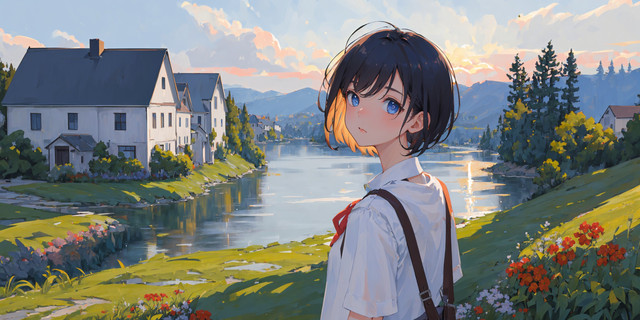 #ai #anime #background #blackhair #blackhairedgirl #clouds #cute #cutegirl #digitalart #digitalartwork #girl #illustration #whitedress #aiartist #aiart #aiartwork #lakeside