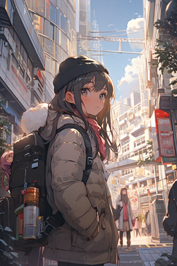 #ai #anime #background #blackhair #blackhairgirl #coat #cute #cutegirl #digitalart #digitalartwork #girl #illustration #oversizedclothes #skirt #aiartist #aiart #aiartwork #mittens