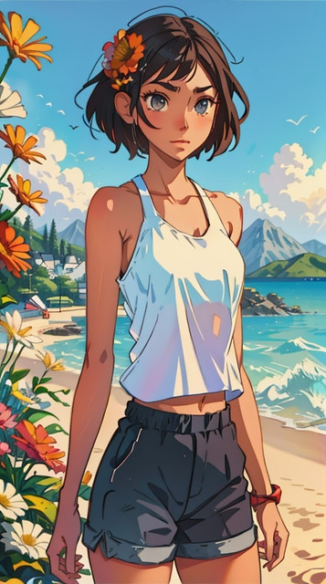 #ai #anime #background #bikiniswimsuit #blackhair #blackhairgirl #cute #cutegirl #digitalart #digitalartwork #girl #hotpants #illustration #aiartist #aiart #aiartwork