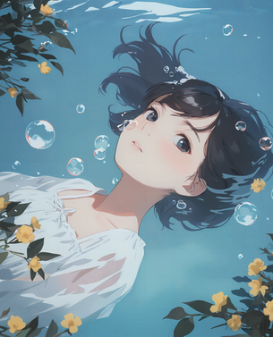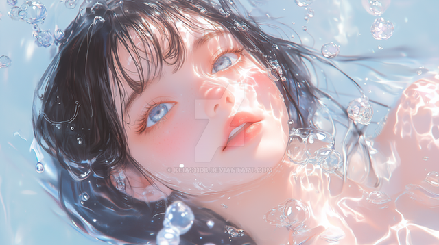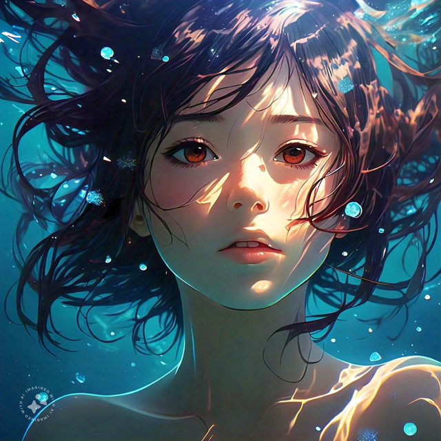#ai #anime #blackhair #blackhairgirl #cute #cutegirl #digitalart #digitalartwork #girl #illustration #underwater #whitedress #aiartist #aiart #aiartwork