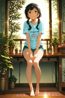 #ai #anime #barefoot #blackhair #blackhairgirl #cute #cutegirl #digitalart #digitalartwork #girl #illustration #whitedress #aiartist #aiart #aiartwork