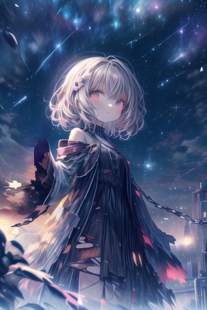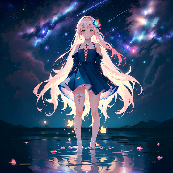 #ai #anime #blondehair #cute #cutegirl #digitalart #digitalartwork #girl #illustration #aiartist #aiart #blondehairgirl #aiartwork #blackdress #starrynight #blackdressgirl