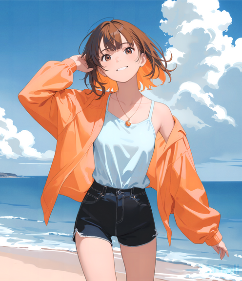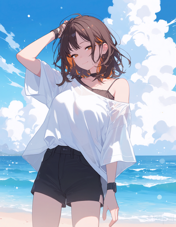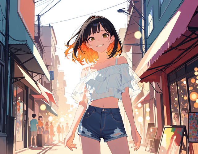 #ai #anime #blackhair #blackhairgirl #cute #cutegirl #digitalart #digitalartwork #girl #hotpants #illustration #aiartist #aiart #aiartwork
