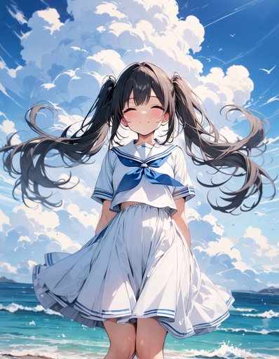 #ai #anime #background #blackhair #blackhairedgirl #cute #cutegirl #digitalart #digitalartwork #girl #illustration #ocean #aiartist #aiart #aiartwork #barefoot #blackdress #clouds