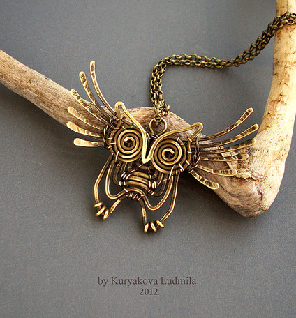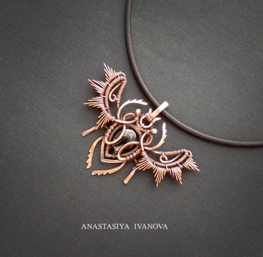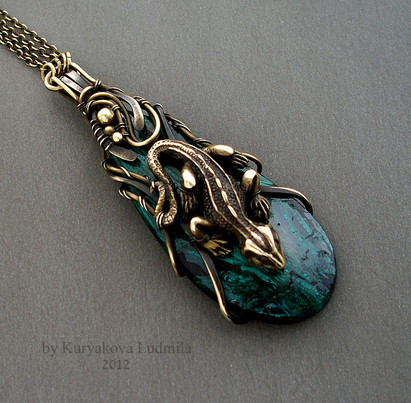 a necklace with a pendant scorpion, handmade in the technique of wireworkcopper, brass