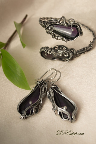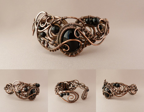 bracelet and earrings set - copper, smoky quartz, patina. forgingmore here [link]