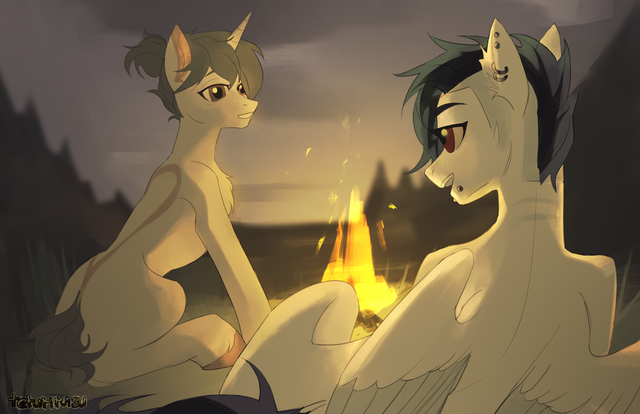 #campfire #character #earth #illustration #mare #mlp #night #oc #original #pony #stallion #unicorn #little #fire