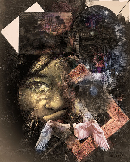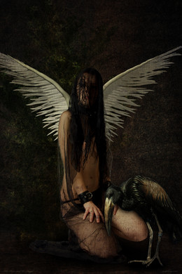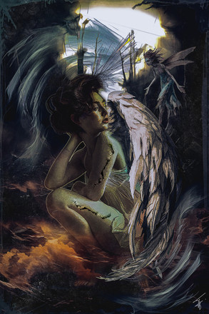 Kind of get the feeling like she is looking down on her. :> I like the way the wings almost look like bones.