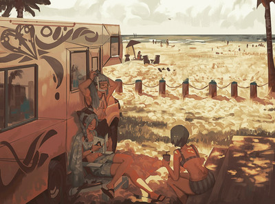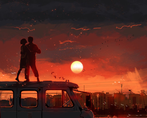 I love the somber feeling here the warm inviting light coming from the van. I can almost hear the gentle guitar strums in this scene.