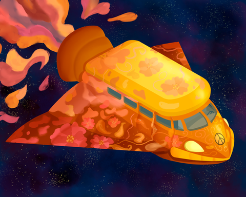 Pretty! Somehow feels old-fashioned and modern sci fi in one. So many lovely details, like the sun and moon
