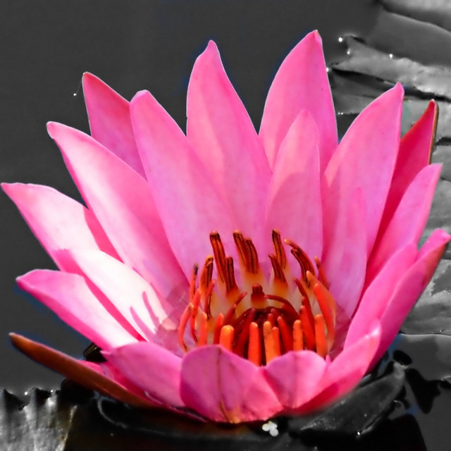 I like how it's just floating in space- it feels as much like a mothership as a flower. The slight off-centered-ness gives it an odd sense of motion, though I'm not sure if I like it or not. It's still, silent, and frozen, but the uneven negative space makes it feel alive and vibrant, possibly as if it were rotating.