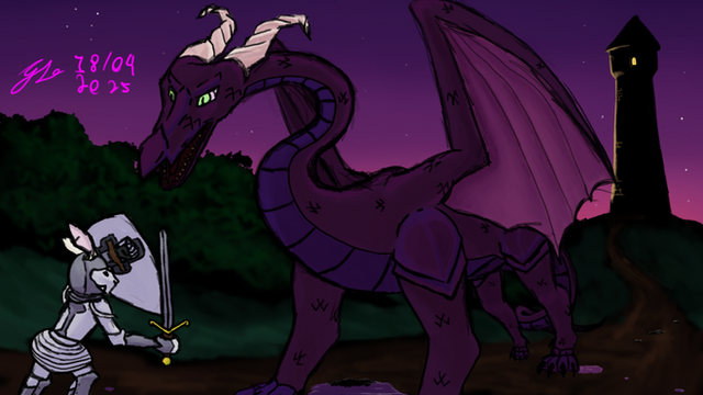 Oooh this looks really awesome, Ana! >w< I think it being lineless makes it look awesome! I really like the coloring of the Jabberwocky, and the texture of him ouo and the castle looks fantastic<3