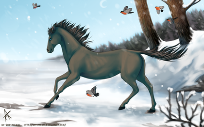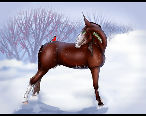 Completed YHH for www.deviantart.com/showjumping… of their boy Spade<33Loved doing this one!Had a lot of fun with the snow especially