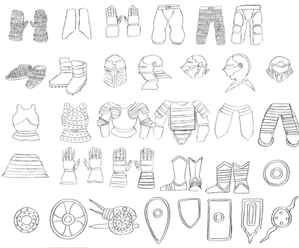 Some armor sketches for my pen & paper rpg system. Historical and Fantasy.Gambeson, Leather Armor, Mailshirt, Plate-Armor, Silk-Armor, Brigandine ...
