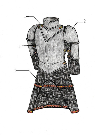 1. Chain Mail Shirt, 2. Full Plate Armor (16th century the torso parts), 3. Full Plate Armor (late 15th century the torso parts), 4. Coat of Plates (14th century), 5. Brigandine (late 14th - 16th century)