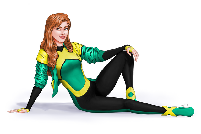 Ah, alright. ^^ well she still looks very pretty. maybe you should try designing your own superhero one day if you like drawing them so much you know?