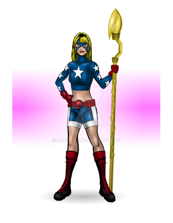 Great pic,love it! Courtney was always one of DC and the JSA's finest! However,I kind of liked her better as the Star Spangled Kid and just can't help remembering jack knight whenever one sees the rod staff she now weilds,but...it does suit her. I just wonder if they'll ever bring back jack knight(As starman preferably.) Anyhoo,great pic,JSA heroes rule!